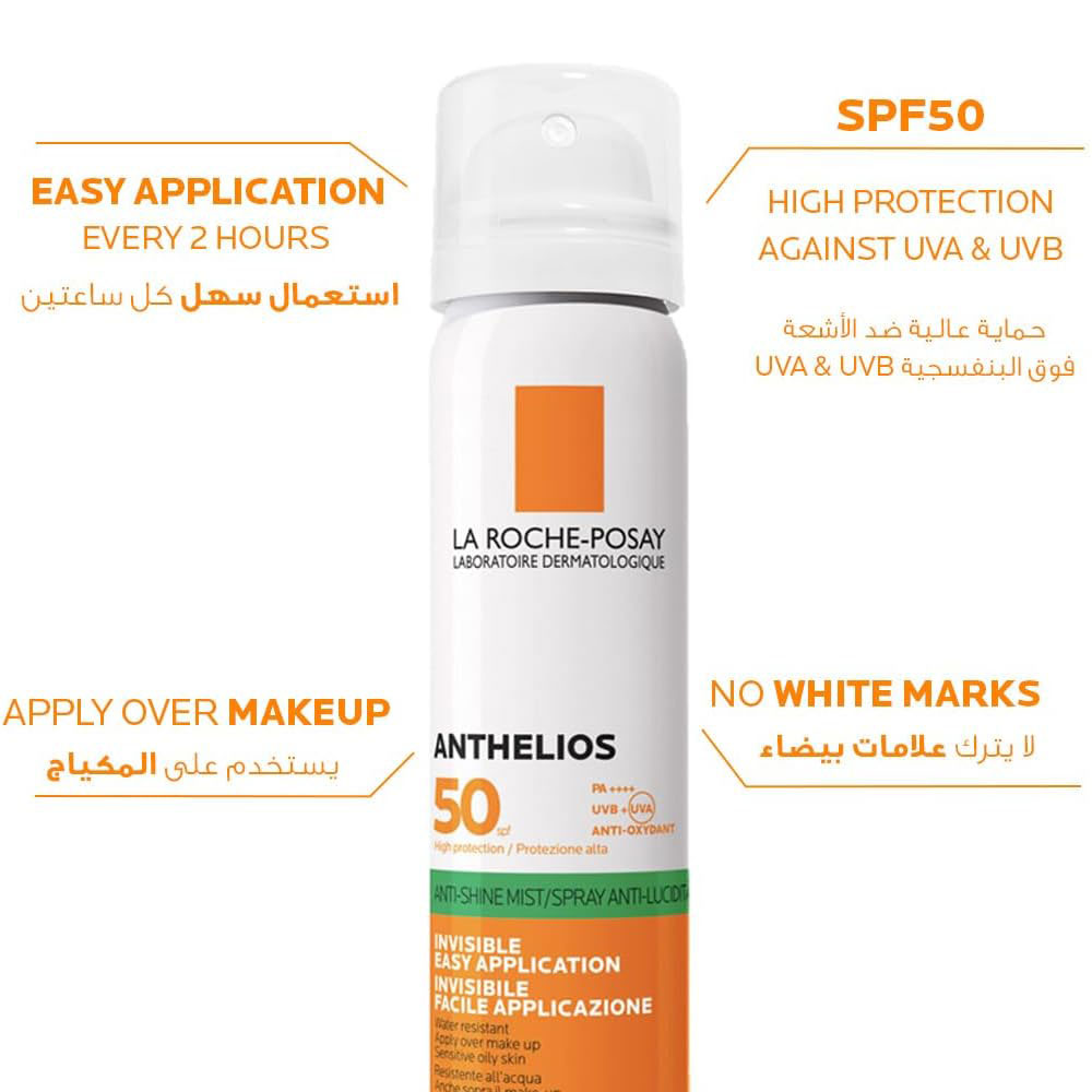 Protect your skin from harmful UV rays with LRP Anthelios Brume Antibrilliance Spray SPF 50 (75 ml) — a high-performance sunscreen spray designed for oily and sensitive skin. Formulated by La Roche-Posay, this ultra-light mist delivers broad-spectrum UVA and UVB protection while providing a refreshing, anti-shine finish that keeps your skin matte and comfortable throughout the day.